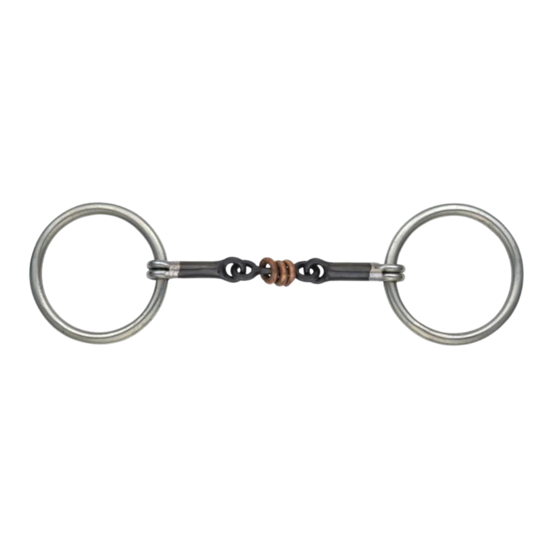 This sweet iron and copper combination provides the horse with a warm and pleasant tasting bit. The roller in the centre creates an uneven surface, which increases the bit's severity. The raised copper ribs can help to prevent the horse taking too much of a hold. Mouthpiece thickness: 14mm. Cheek height: 65mm. Sweet iron mouthpieces are designed to oxidize to produce a sweet taste which helps with mouthing. The addition of copper to the mouth ensures the horse will not take up too much of a contact, ideal for horses that can take a hold. Stainless steel is used for the cheeks due to it being durable, easy to clean and resistance to rust.