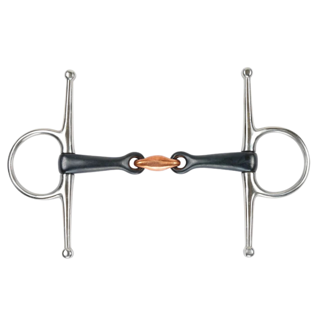 The sweet iron and copper link aid salivation and acceptance. The full cheeks assist with steering, making this a great bit for young horses. Mouthpiece thickness: 16mm. Cheek height: 160mm. Sweet iron mouthpieces are designed to oxidize to produce a sweet taste which helps with mouthing. The addition of copper to the mouth ensures the horse will not take up too much of a contact, ideal for horses that can take a hold. Stainless steel is used for the cheeks due to it being durable, easy to clean and resistance to rust.