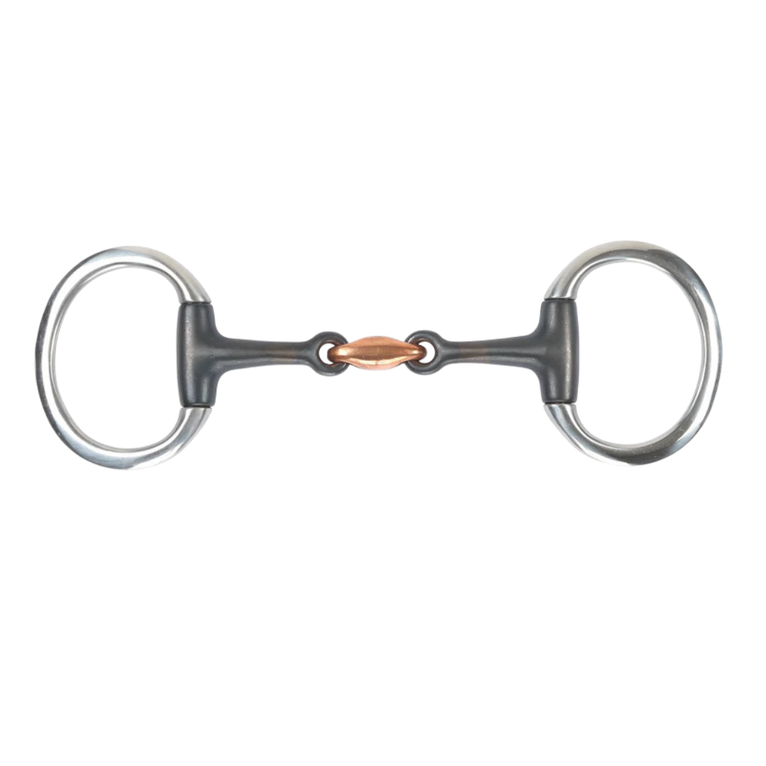 The fixed rings prevent pinching, whilst the sweet iron mouthpiece encourages salivation. The lozenge avoids a nutcracker action. Mouthpiece thickness: 14mm. Cheek height: 55mm (4.5", 5"), 75mm (5.5", 6"). Sweet iron mouthpieces are designed to oxidize to produce a sweet taste which helps with mouthing. The addition of copper to the mouth ensures the horse will not take up too much of a contact, ideal for horses that can take a hold. Stainless steel is used for the cheeks due to it being durable, easy to clean and resistance to rust.