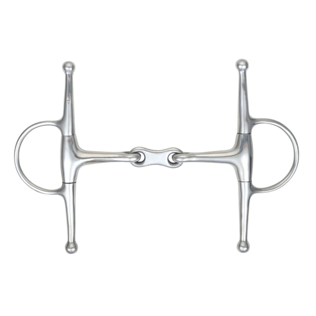 The French link in this bit means pressure is applied to both sides of the tongue. Some horses with low palates may find this bit more comfortable as it is unlikely to make contact with the palate when the bit comes in to action. The full cheeks assist with steering. Mouthpiece thickness: 14mm. Cheek height: 165mm. Stainless steel is the most common material for bits. Durable, easy to clean, tasteless and does not rust.