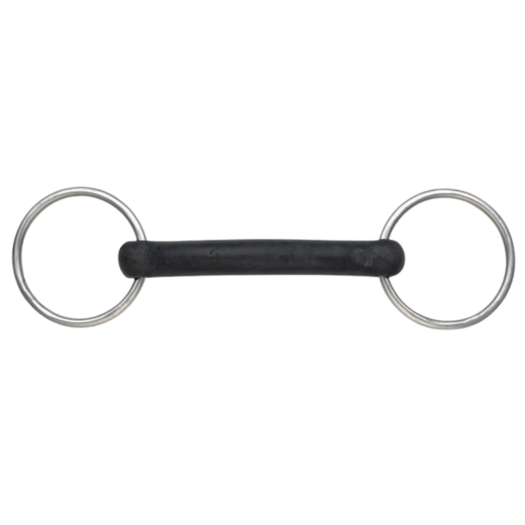This bit is made from hard rubber so it is not flexible but is still kind due to the thick mouthpiece. Mouthpiece thickness: 21mm. Cheek height: 65mm. Rubber covered mouthpieces are generally thicker, making them softer and particularly suited to sensitive mouths. Available as mild, flexible rubber or treated with heat to produce a harder rubber which has a slightly stronger action. It is important that the horse salivates effectively using rubber mouthpiece bits. Stainless steel is used due to it being durable, easy to clean and resistance to rust.