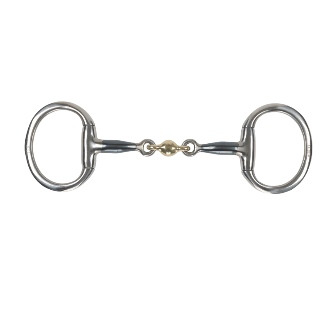 The fixed rings prevent pinching, whilst the brass alloy double joint distributes pressure over both the tongue and bars of the mouth to encourage mouthing and contact. Mouthpiece thickness: 14mm. Cheek height: 55mm (4.5", 5"), 75mm (5.5", 6"). Blue sweet iron mouthpieces oxidise easily to create warmth with a sweet taste which helps with bit acceptance and encourages salivation. Please note the blue colour will fade with use. Stainless steel is used for the cheeks due to it being durable, easy to clean and resistance to rust.