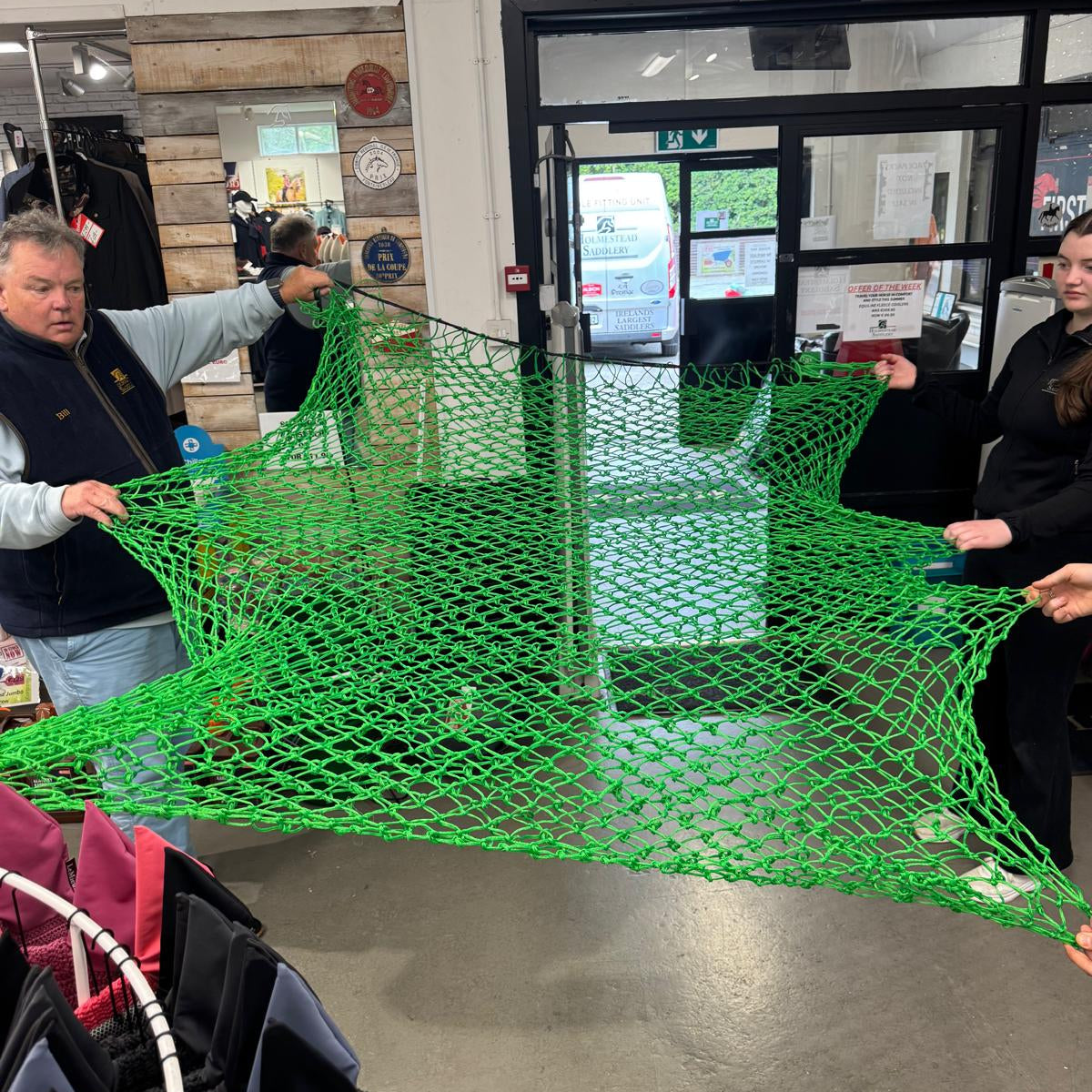 The Homestead Hay Bale Nett offers a durable and practical solution for feeding large bales. Designed in vibrant blue and green, this haynet is crafted to withstand heavy use while minimizing hay waste. Its robust construction ensures secure containment of hay, making it ideal for efficient feeding in any stable or pasture setting. Perfect for managing big bales, it supports healthy feeding habits and reduces mess, helping you maintain a clean and organized environment.