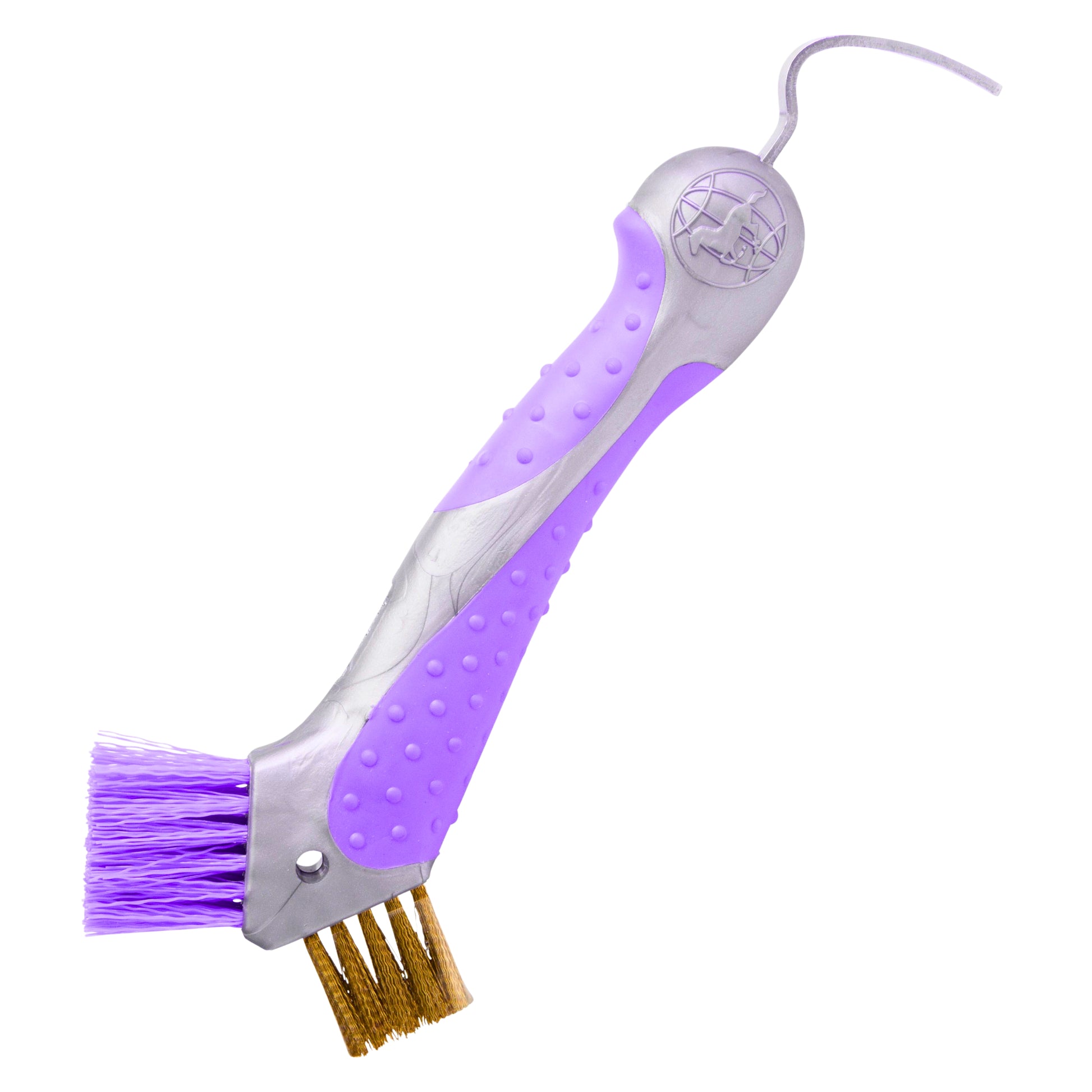 This hoof pick features a scraper, combined soft and hard brushes, and an ergonomic anti-slip handle for precise and comfortable cleaning.